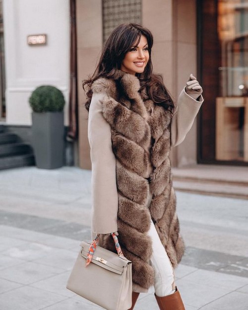 Les manteaux de fourrure sont également importants à l’automne - les gilets sans manches ou avec une large manche trois-quarts, qui doivent être portés avec des gants et des bottes hautes.