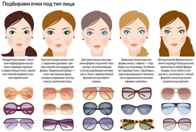 Visage rond Les représentants du charmant sexe au visage rond doivent s’adonner aux modèles de lunettes de soleil, qui aideront à «étirer» visuellement le visage: lunettes carrées et surdimensionnées, «papillons» et «chats». Les lunettes trop foncées ne sont pas recommandées, mieux gris et avec un dégradé.