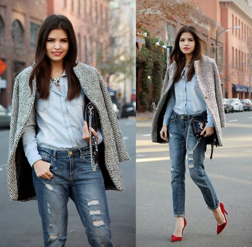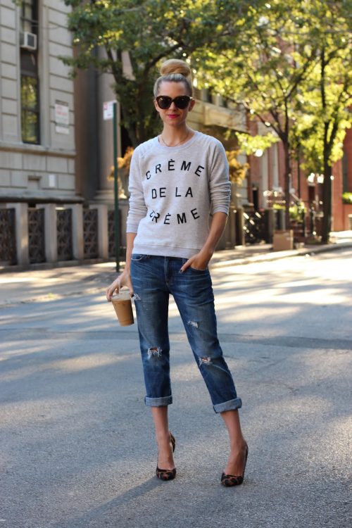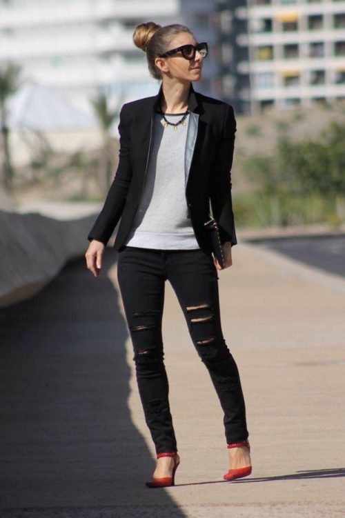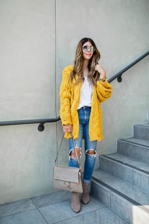 Un style chic et décontracté vous aidera à créer de jolis arcs pour vous avec des blousons aviateur, des pulls molletonnés, des manteaux, des vestes, des cardigans, en les complétant avec un jean bleu noir, blanc, bleu, classique, déchiré et recadré, des chaussures à talons et sans.