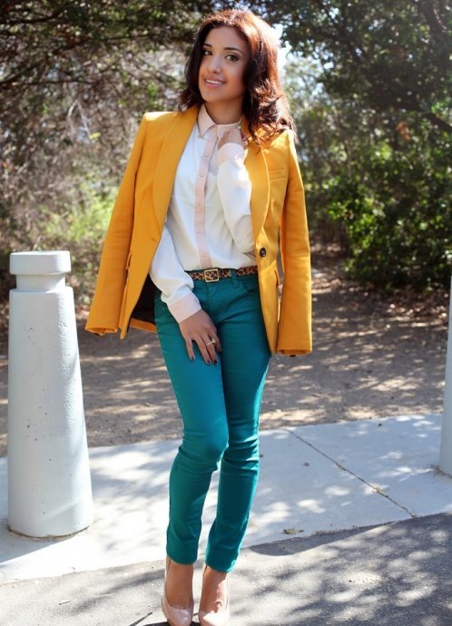 Si vous préférez un style de travail décontracté, n'hésitez pas à choisir des t-shirts simples et légers, des blouses aux couleurs délicates et saturées, des pantalons et des jeans ajustés, éventuellement raccourcis.
