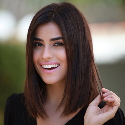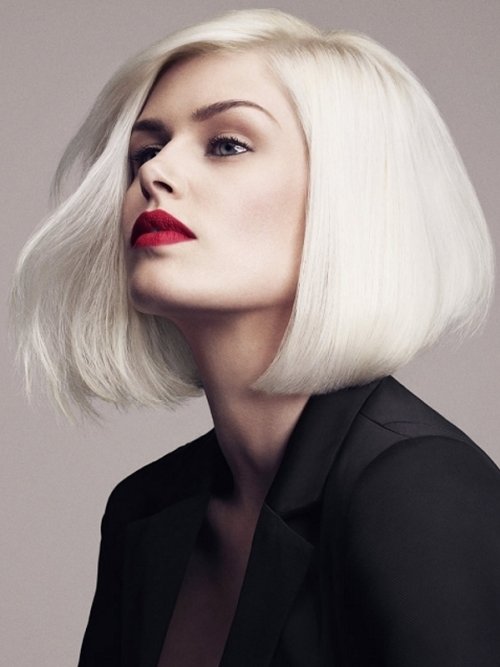 Une coupe droite dans une coupe de cheveux de bob convient aux filles avec les cheveux épais et raides. Cette image sera très sophistiquée et féminine.