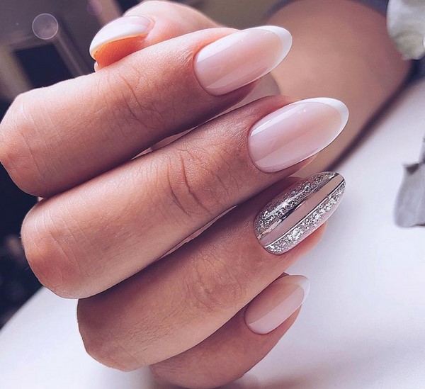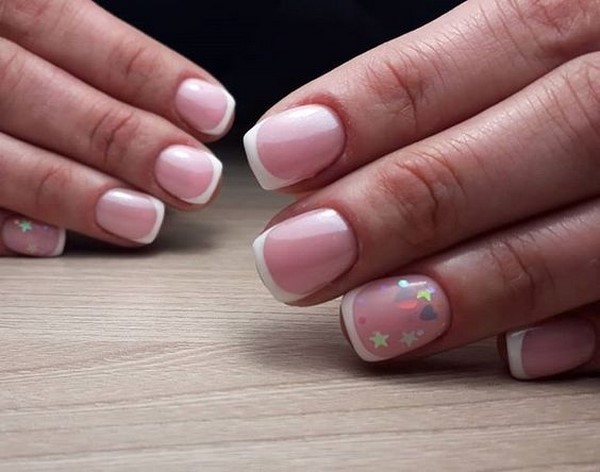 Le design traditionnel des ongles français, comme auparavant, est pertinent et recherché par de nombreuses femmes. Et si vous souhaitez obtenir un look élégant avec un design français, utilisez des brillants - des paillettes ou des confettis, qui ajouteront une touche d'élégance et de chic à votre design préféré.