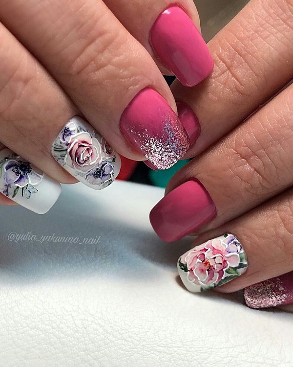 Manucure Florale Glitter