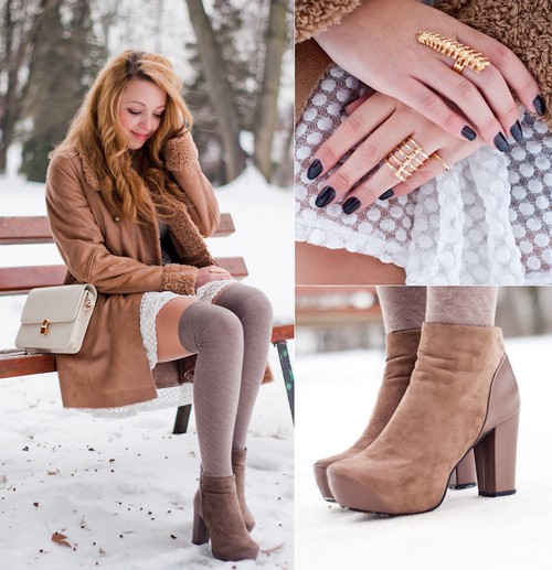Notez que les jupes chaudes matelassées, laine, fourrure et cuir sont à la mode. On trouve des robes chaudes dans la version midi et maxi.