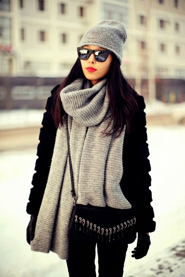 Aujourd'hui, la garde-robe d'hiver pour femmes doit obligatoirement comporter différentes versions d'écharpes tricotées qui réchaufferont et sauveront du vent et de la neige.
